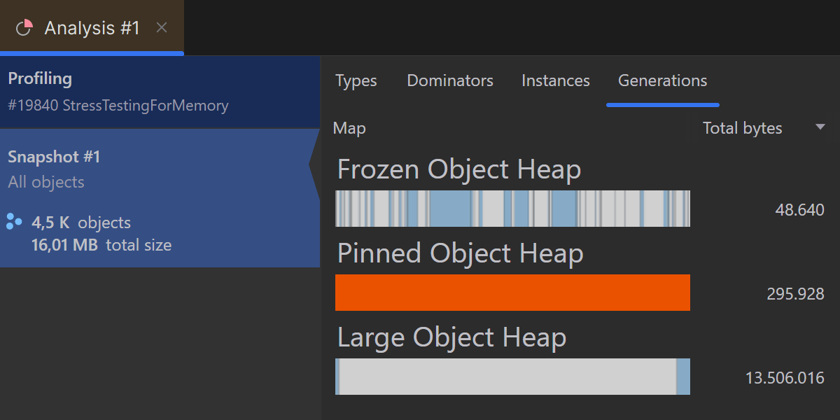 内置的 dotMemory 分析工具现已提供对冻结对象堆 (FOH) 的支持 – FOH 最初随 .NET 6 SDK 引入,作为垃圾回收性能改进的一部分。