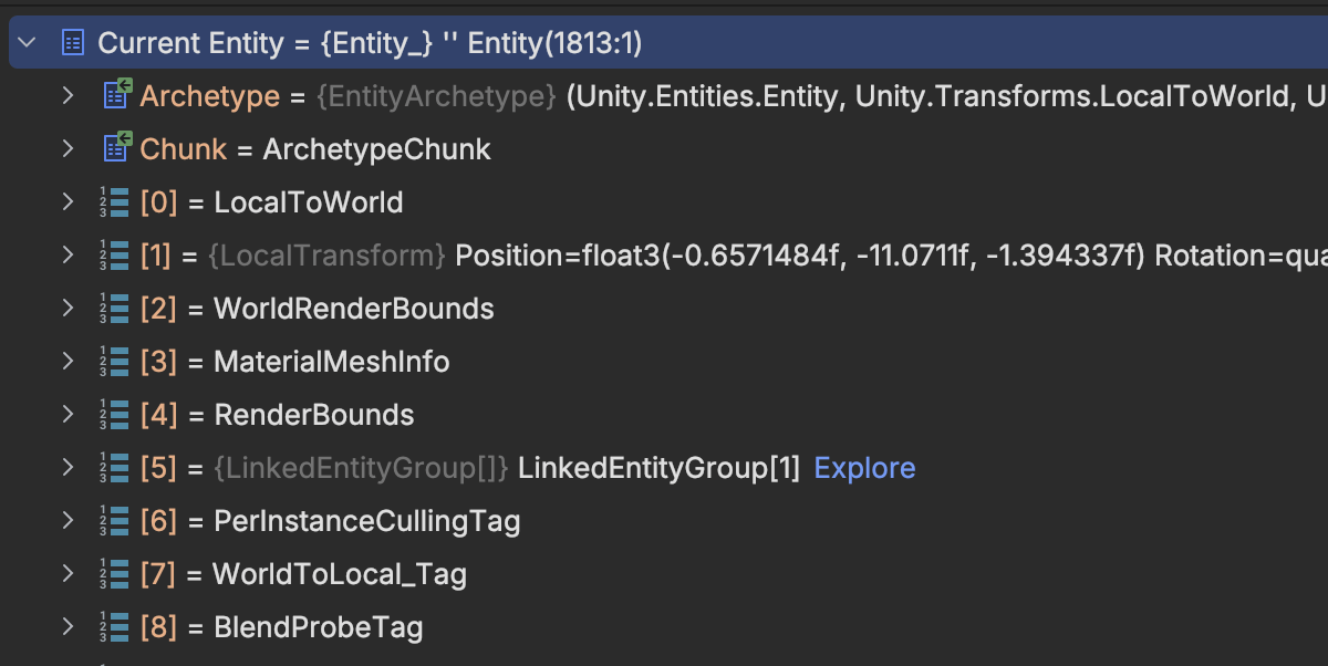 由于 Rider 提供了更多 DOTS 特定的支持,调试得到了提升,例如在 Watches(监视)窗格中检查 IJobEntity 实例时添加 Entity 子节点。 暂停点也已更新为可与 DOTS 系统配合使用。 纹理调试值可视化器已修正了一些 bug,新的集合可视化器将有助于游戏对象的集合。