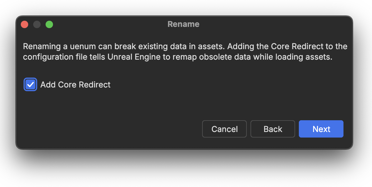 Rider 与蓝图功能的智能集成进一步发展,支持在重命名 UENUM 实例时添加核心重定向,C++ 代码中的资源名称获得资产路径补全。