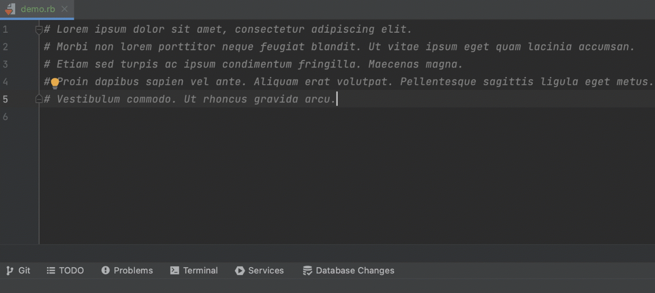 此版本添加了一个新选项,按 Enter 可以退出行注释继续。 使用 Shift+Enter 可以插入空的注释行。 您可以在 Preferences / Settings | Advanced Settings | Ruby | Delete empty line comment with Enter(偏好设置 / 设置 | 高级设置 | Ruby | 使用 Enter 删除空行注释)复选框中切换此选项。