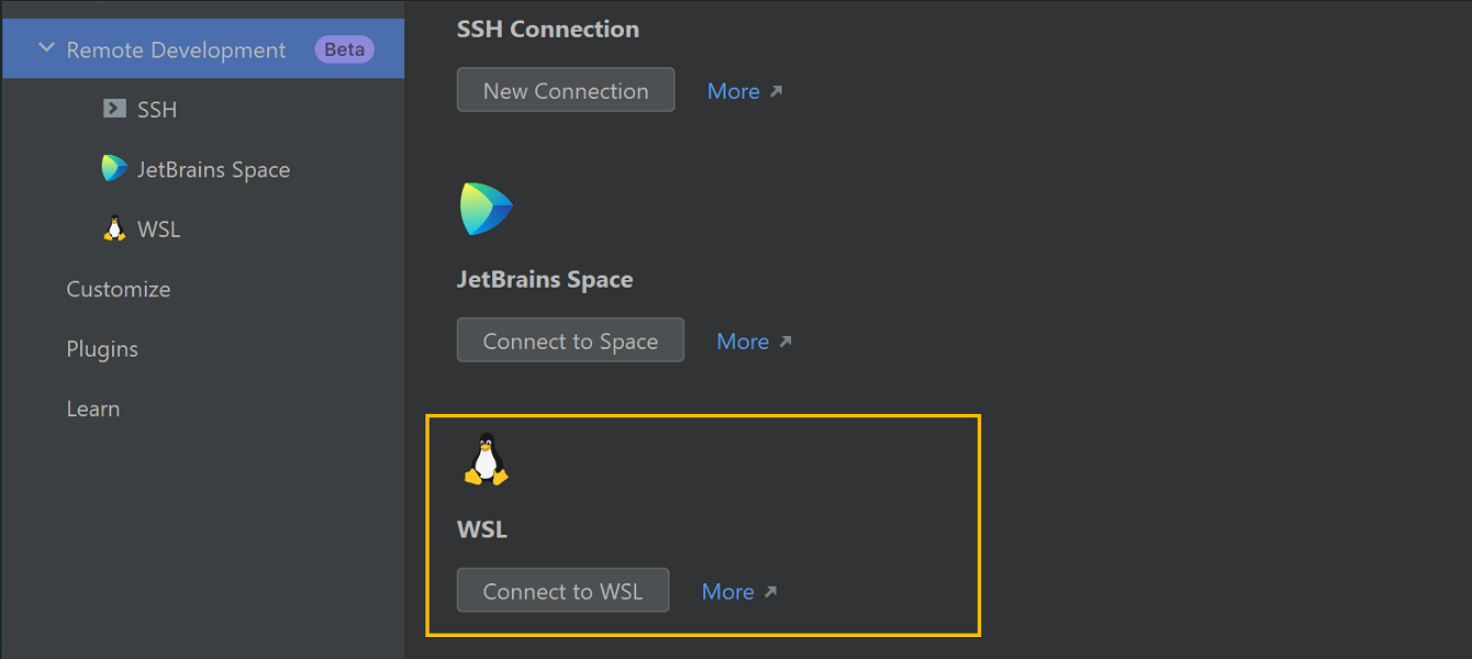 处理 WSL2 中的项目时,RubyMine 2022.3 可以提供更好的 IDE 性能。 如果您处理在 WSL2 文件系统中运行的项目,这是一种使用远程开发功能的替代方式。 IDE 后端将直接在 WSL2 中启动,而不是在 Windows 上运行完整的 IDE。 然后,您可以像连接到任何远程机器一样连接到它。