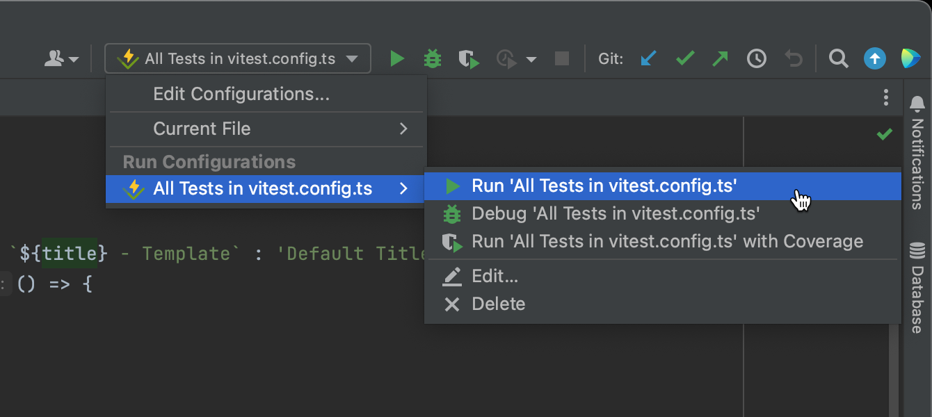 RubyMine 现已支持 Vite 原生单元测试框架 Vitest! 您可以运行、重新运行和调试测试,并默认对“所有测试”场景使用监视模式。 在监视模式下还支持快照测试和覆盖率,从而在编码时为您提供几乎即时的覆盖率反馈。