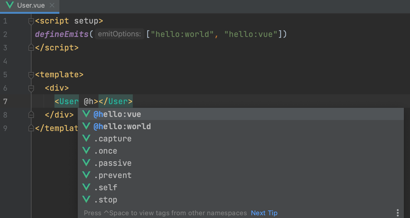 RubyMine 现在可以处理未解析的导入,并为导入 Vue 组件提供建议。 我们也为 props 析构语法提供了支持,改进了针对 Vue 库组件 props 的代码补全和类型检查行为,并修正了几个 Nuxt 3 问题。