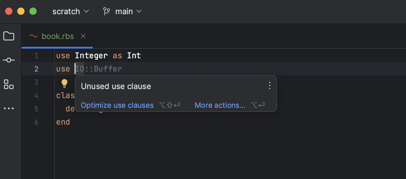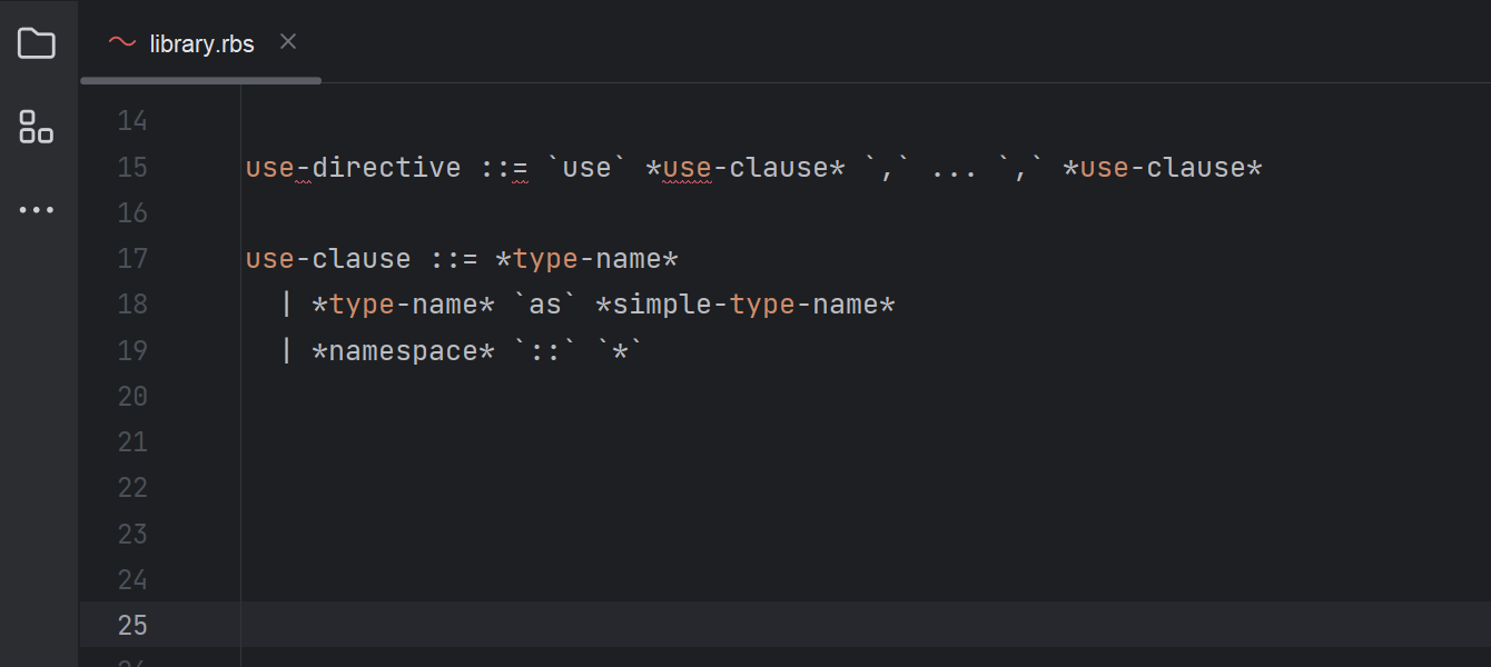 代码洞察功能现在可用于 RBS 中的 use 语法。