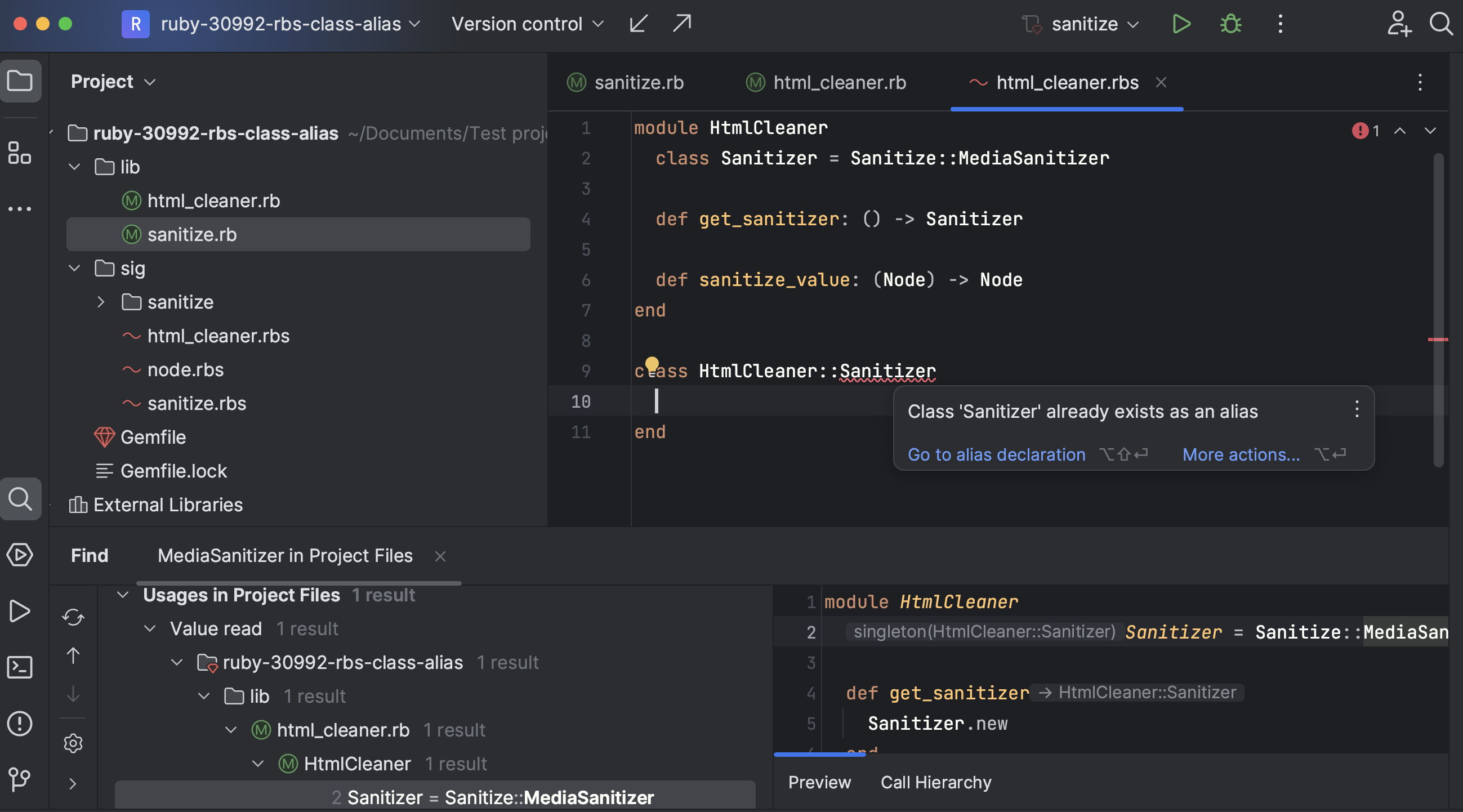 代码洞察、导航、类型推断和重命名重构现在可用于类和模块别名。