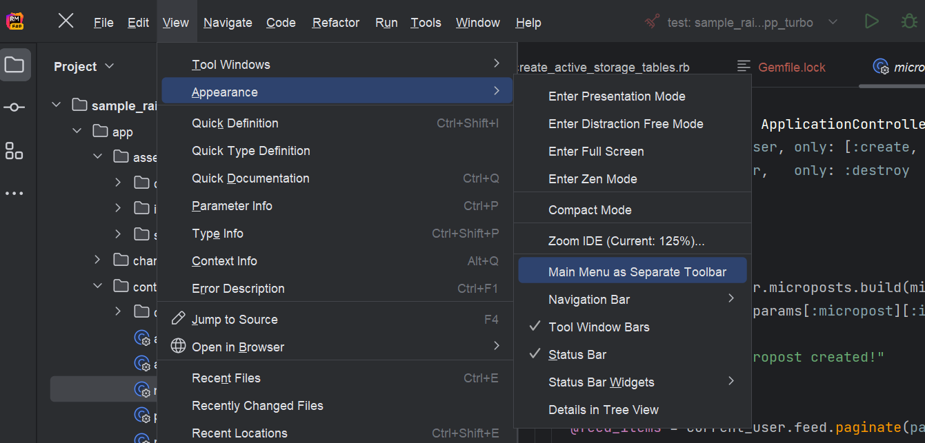 此版本更新了 Ruby on Rails 项目中的 Turbo 代码补全。 控制器和视图中的 Turbo 流以及从模型中广播 Turbo 流的操作现在可以使用代码补全。 还可以在视图中为 Turbo 帧使用补全。