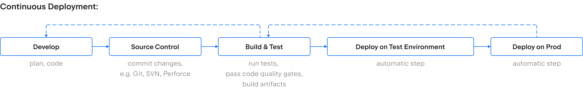 通过持续部署,发布是自动进行的。 在通过之前所有阶段后,更改才会生效。 对于频繁提交的大型团队来说,这可能意味着每天要向用户部署几十次更新。如果没有自动化管道,这几乎是不可能完成的任务。