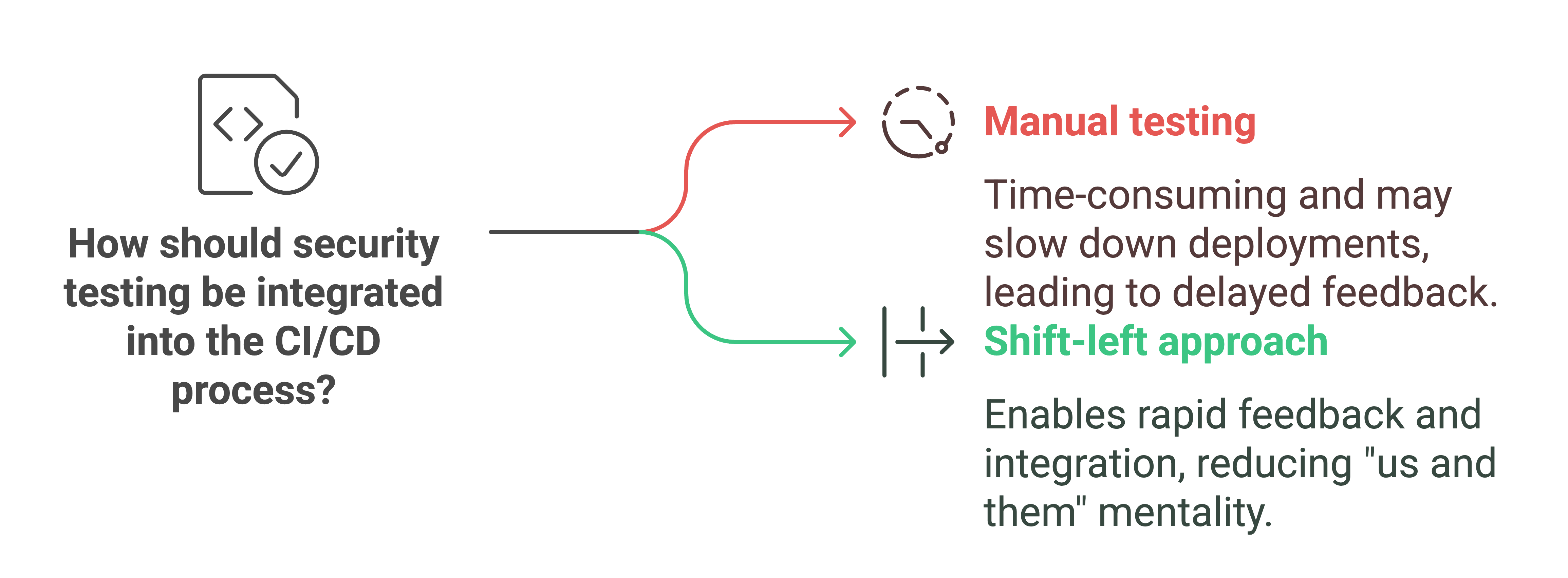 尽管手动安全测试有其价值(我们将在下面讨论),但将对安全要求的参与限制在 CI/CD 流程末尾的一个步骤意味着您将错过快速、定期反馈的好处,原因如下:
