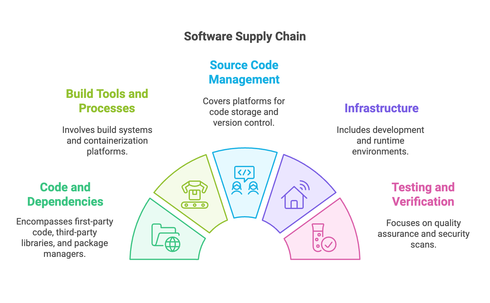 我们所说的“软件供应链”是什么意思? 简单地说,就是软件开发和交付所涉及的一切。 所有软件开发都需要其他软件,例如可重用的组件与库、IDE、框架和构建工具。 软件供应链安全涉及评估您所依赖的软件的安全性和保护您的开发流程。