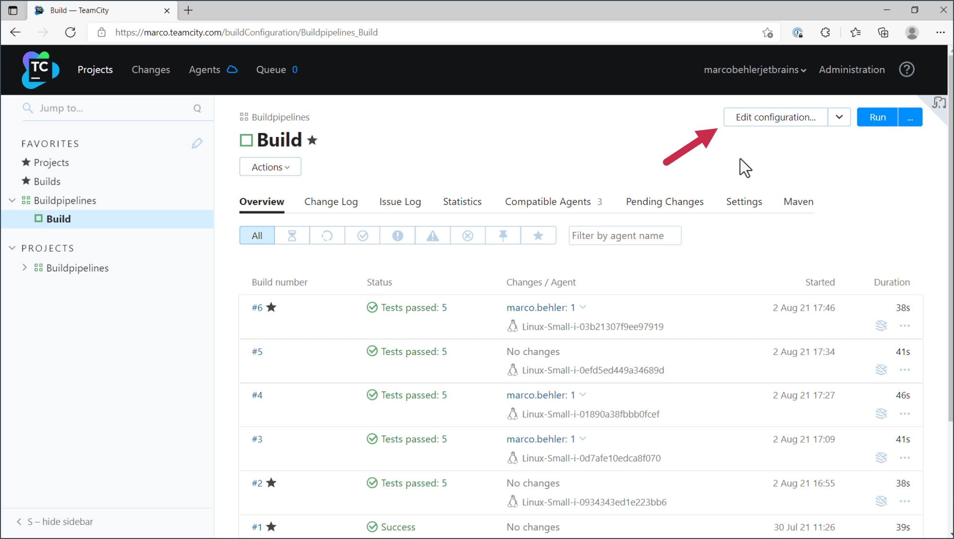 要获取构建生成的数据,请转到 Edit Configuration(编辑配置)。