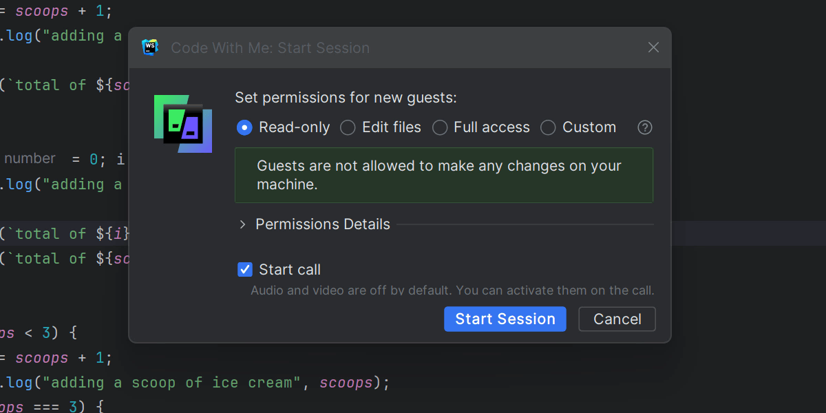 WebStorm 包含 Code With Me,这是一项用于协作开发和结对编程的服务。 您可以使用它实时与其他人一起编码,提供对本地计算机上端口的访问,并直接从 IDE 与团队成员交流。