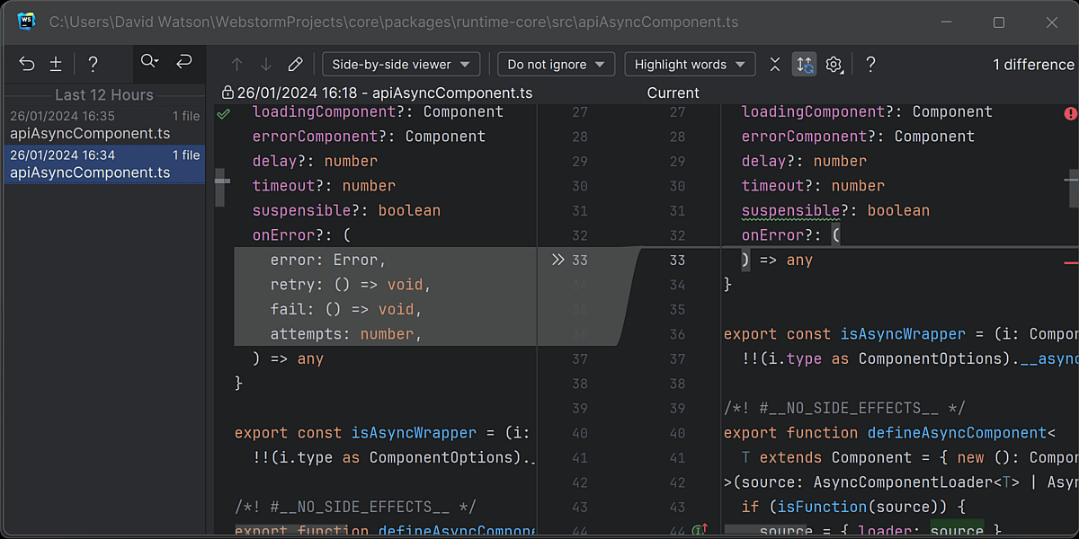 如果您忘记提交对版本控制的更改或意外删除了一系列文件,该怎么办? WebStorm 提供了一种解决方案:内置的本地历史。 它可以跟踪对项目文件所做的所有更改,即使您尚未对项目使用版本控制,也可以进行回滚。