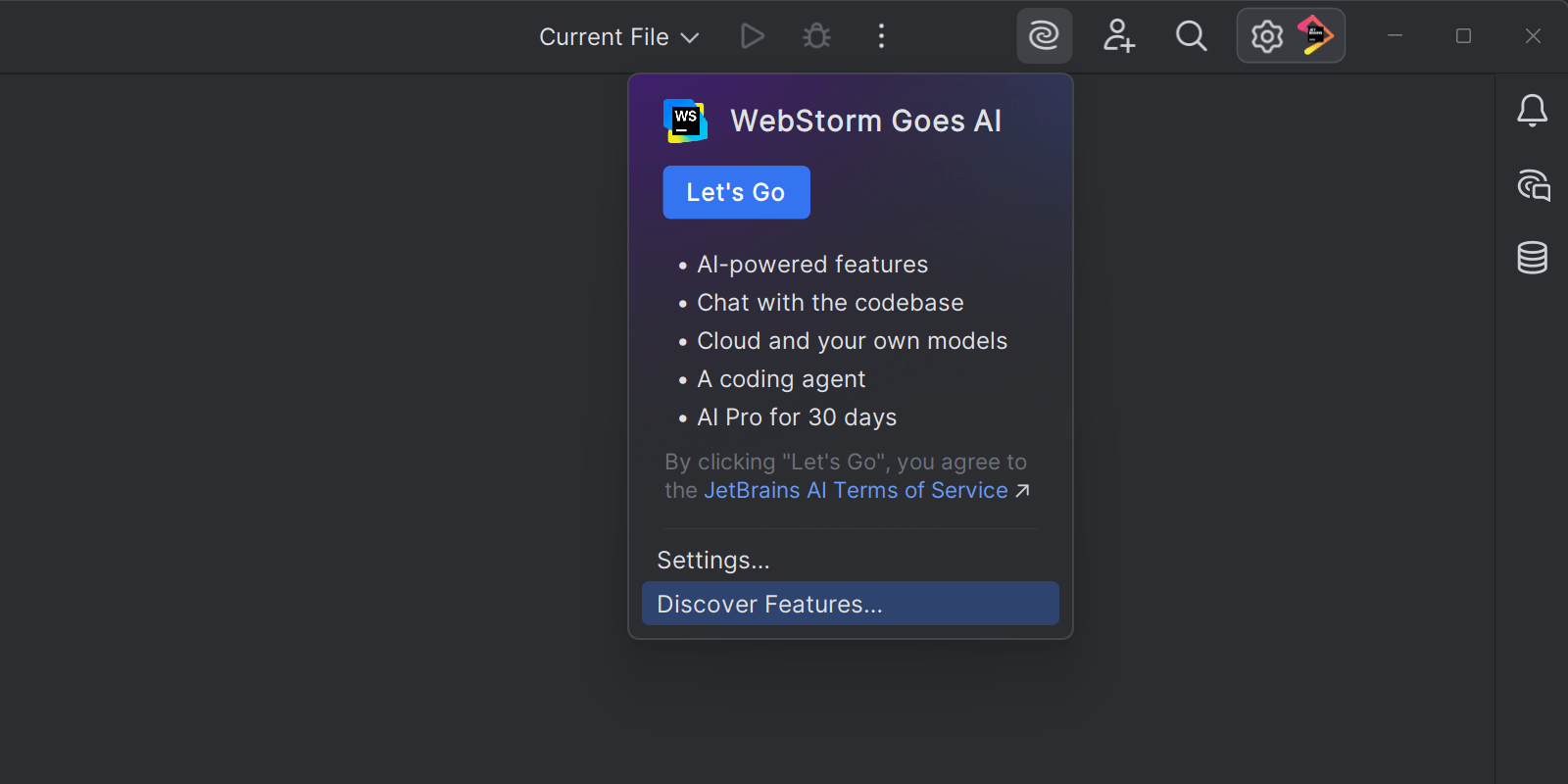 Islands 主题现在是 WebStorm 和其他 JetBrains IDE 中的默认外观。 这款主题旨在帮助您保持专注并轻松编码,包括易于识别的标签页、增强的编辑器内对比度、工作区域的清晰分隔以及圆角设计。 此次更新只影响视觉效果,所有功能保持不变。
