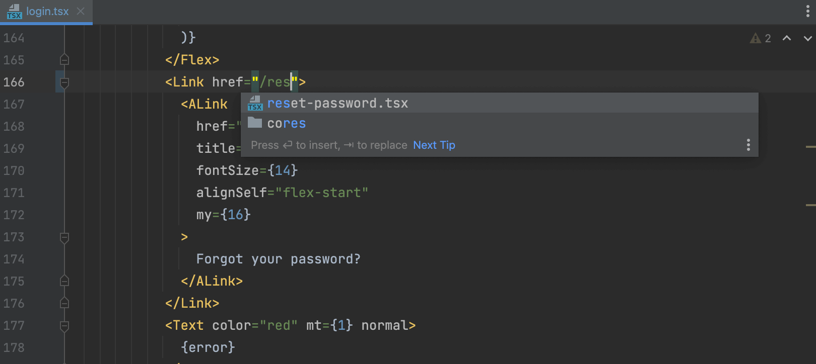 得益于 WebStorm 的内置 React 支持,所有关键功能都应该已经可以在 Next.js 项目中运行。 WebStorm 2022.1 添加了对页面等特定于框架的对象的支持。 IDE 将解析 Link 组件的 href 特性以及 form 和其他标记中使用的路径。 代码补全、导航和重构也将可以运行。