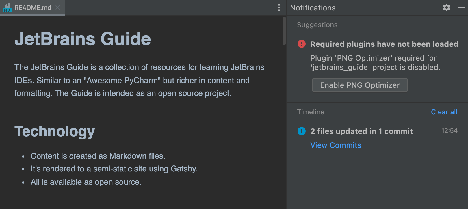 我们用新的 Notifications(通知)工具窗口替换了 WebStorm 的 Event Log(事件日志)。 我们希望这可以帮助您更好地概括了解 IDE 的通知,确保您不会错过任何重要信息。