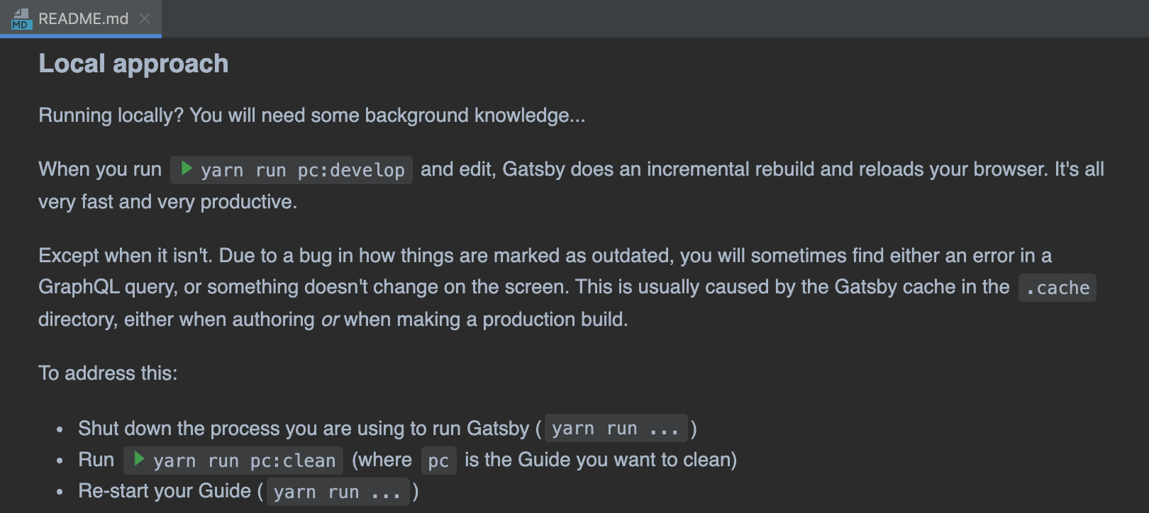 如果您喜欢 WebStorm 中的小技巧,您一定会喜欢这个新增功能。 README 文件通常会描述运行应用所需的步骤,并列出大量要使用的命令。 在 WebStorm 2022.1 中,只需点击命令左侧的 Run(运行)图标,即可直接从 README 文件运行这些命令。