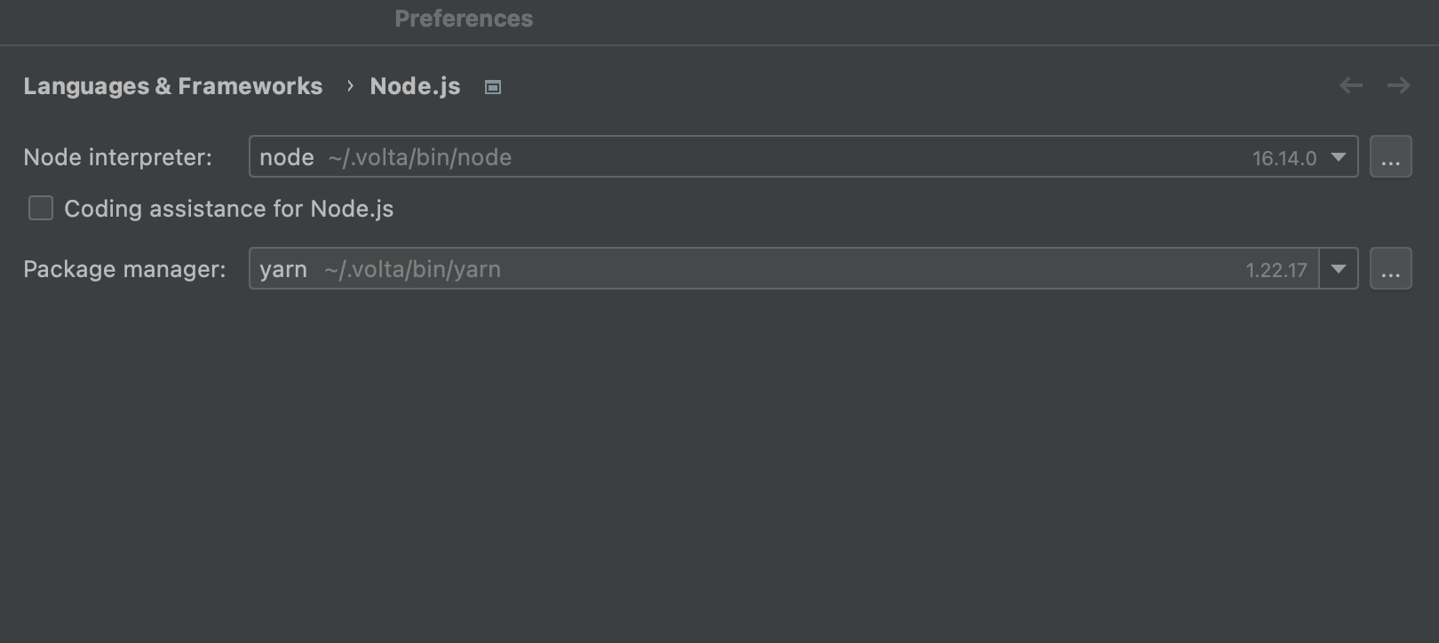 在此版本中,我们添加了与 JavaScript 工具管理器 Volta 的集成。 WebStorm 将自动识别使用 Volta 安装的 Yarn 和 npm。