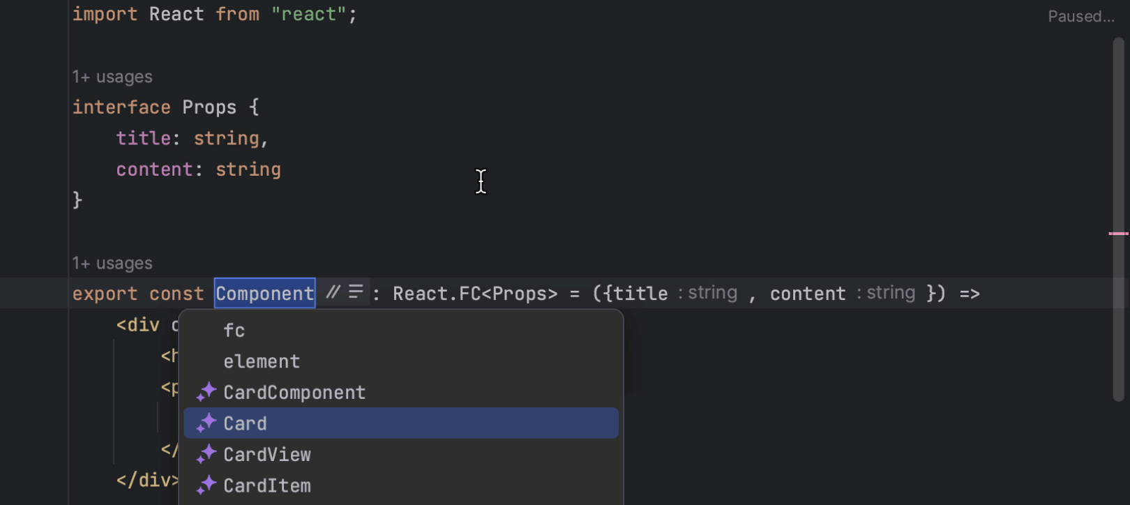 现在,将 HTML 代码粘贴到 JSX 文件中时,它不仅会转换特性,还会自动为您闭合单一标记。 您可以在 Settings | Editor | General | Smart Keys | JavaScript(设置 | 编辑器 | 常规 | 智能按键 | JavaScript)下配置此选项。