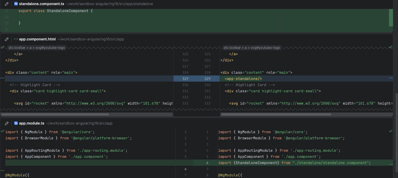 我们在 Angular 模板中改进了对严格模板类型检查的支持。 我们还添加了对 v17 中新控制流语法的初步支持和对信号的支持,包括 signal、computed 和 effect 等实时模板。 Alt+Enter 也提供了新的快速修复。 例如,您可以从组件模板创建 @Input 和 @Output 属性。 有关详情,请阅读这篇博文。