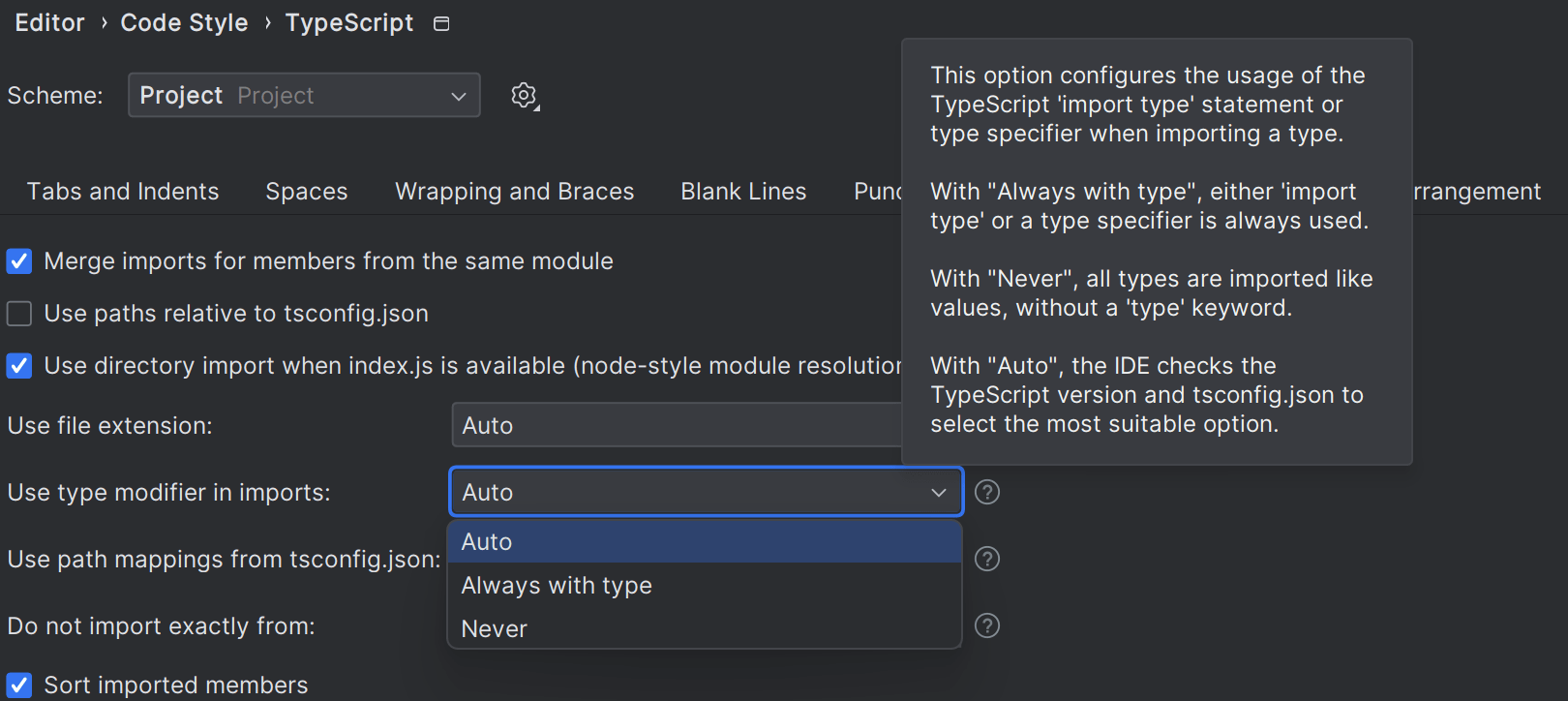 WebStorm 2023.3 解决了添加 import type 语句时出现的不一致。 我们添加了用于在导入类型时配置 TypeScript import type 语句或类型说明符的用法的选项。 我们还为 TypeScript 文件改进了 package.json 的 exports 字段的行为。