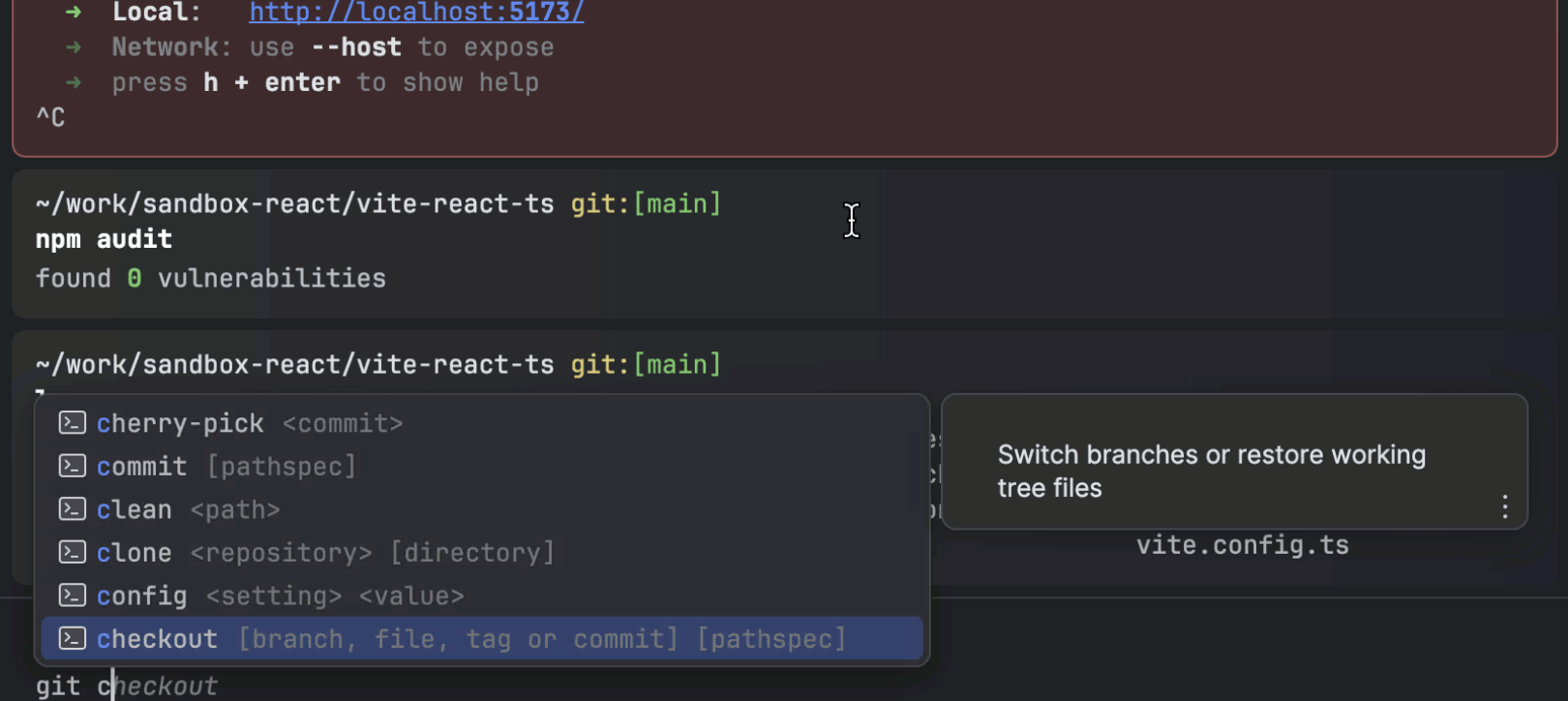 我们实现了一个新终端 UI,您可以在 Settings | Tools | Terminal | Enable New Terminal(设置 | 工具 | 终端 | 启用新终端)下启用。 命令现在显示在不同的块中,允许使用箭头键或键盘快捷键轻松导航(Ctrl+↑ 和 Ctrl+↓)。 此外,您还可以享受命令、路径、实参和选项的代码补全。 有关详情,请阅读这篇博文。