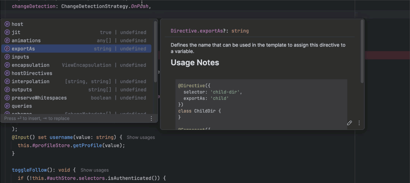 WebStorm 2024.1 中的快速文档弹出窗口具有改进的功能, 支持代码块的语法高亮显示,并集成到补全结果中。 它现在显示接口成员、枚举常量和类型别名主体。 您可以使用 Show more(展开)链接访问类型成员的完整列表,并使用分页控件在多个声明之间导航。