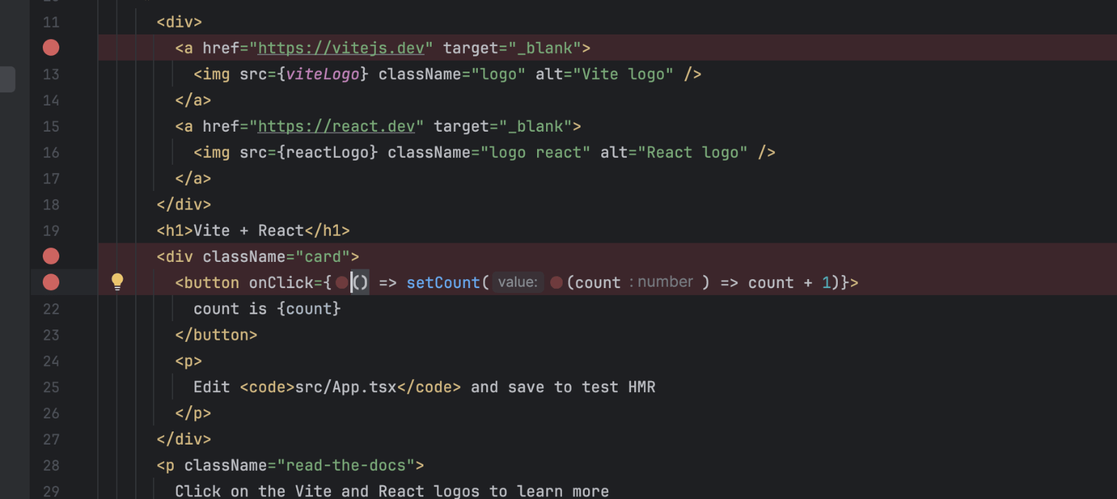 WebStorm 2024.1 为行中断点设置提供了更方便的工作流。 点击装订区域设置断点后,IDE 会自动显示可在其中设置额外断点的内联标记。 每个断点都可以独立配置,释放高级调试功能。
