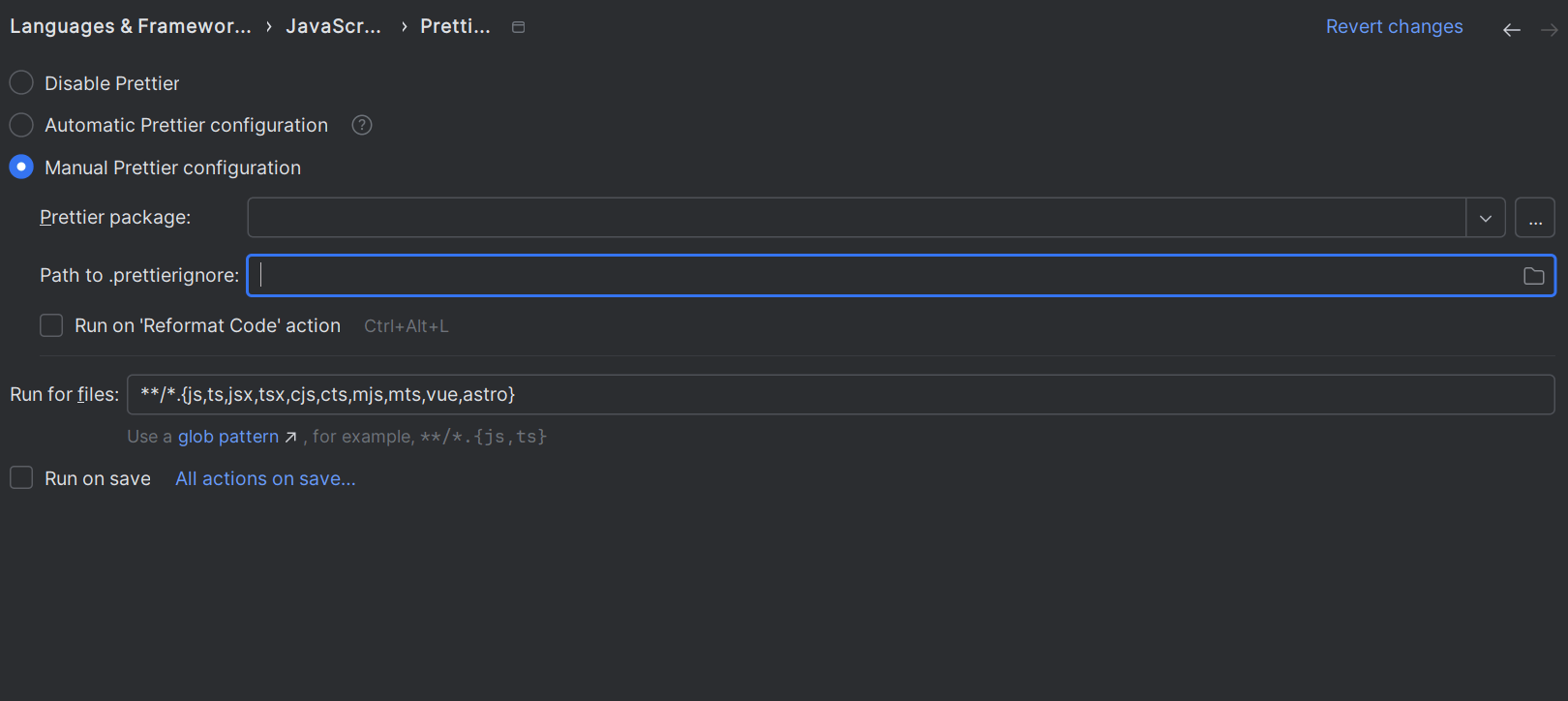 .prettierignore 的正确处理 WebStorm 现在可以正确处理包含 package.json 的子文件夹中的 .prettierignore 文件,确保不会设置忽略的文件的格式。 一个新选项允许您在 Settings | Languages & Frameworks | JavaScript | Prettier(设置 | 语言和框架 | JavaScript | Prettier)中指定自定义忽略文件。