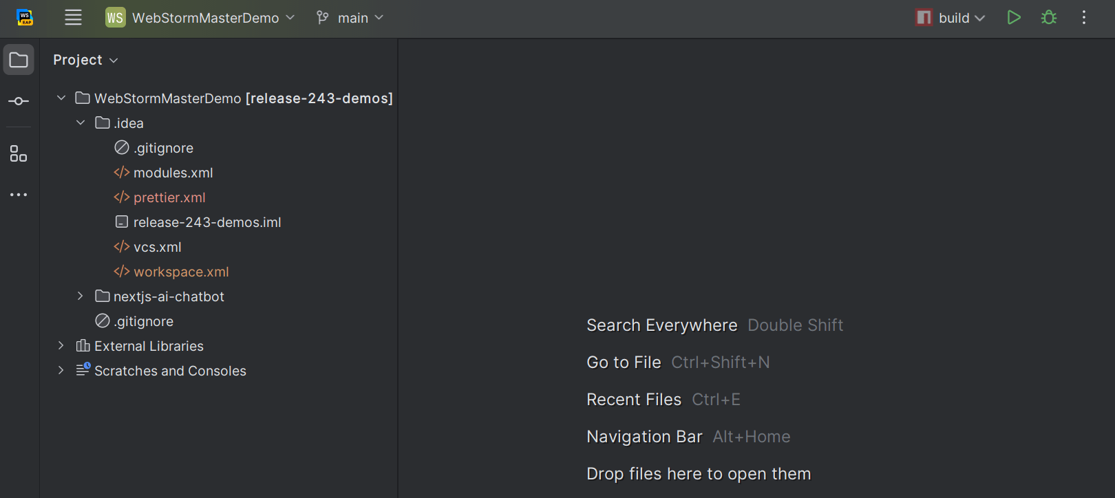 .idea 目录默认显示 此前,.idea 文件夹(WebStorm 存储内部配置设置的地方)默认隐藏。 这使一些用户更难提交项目级配置。 为了解决这个问题,我们在 Project(项目)工具窗口中将其设为可见。