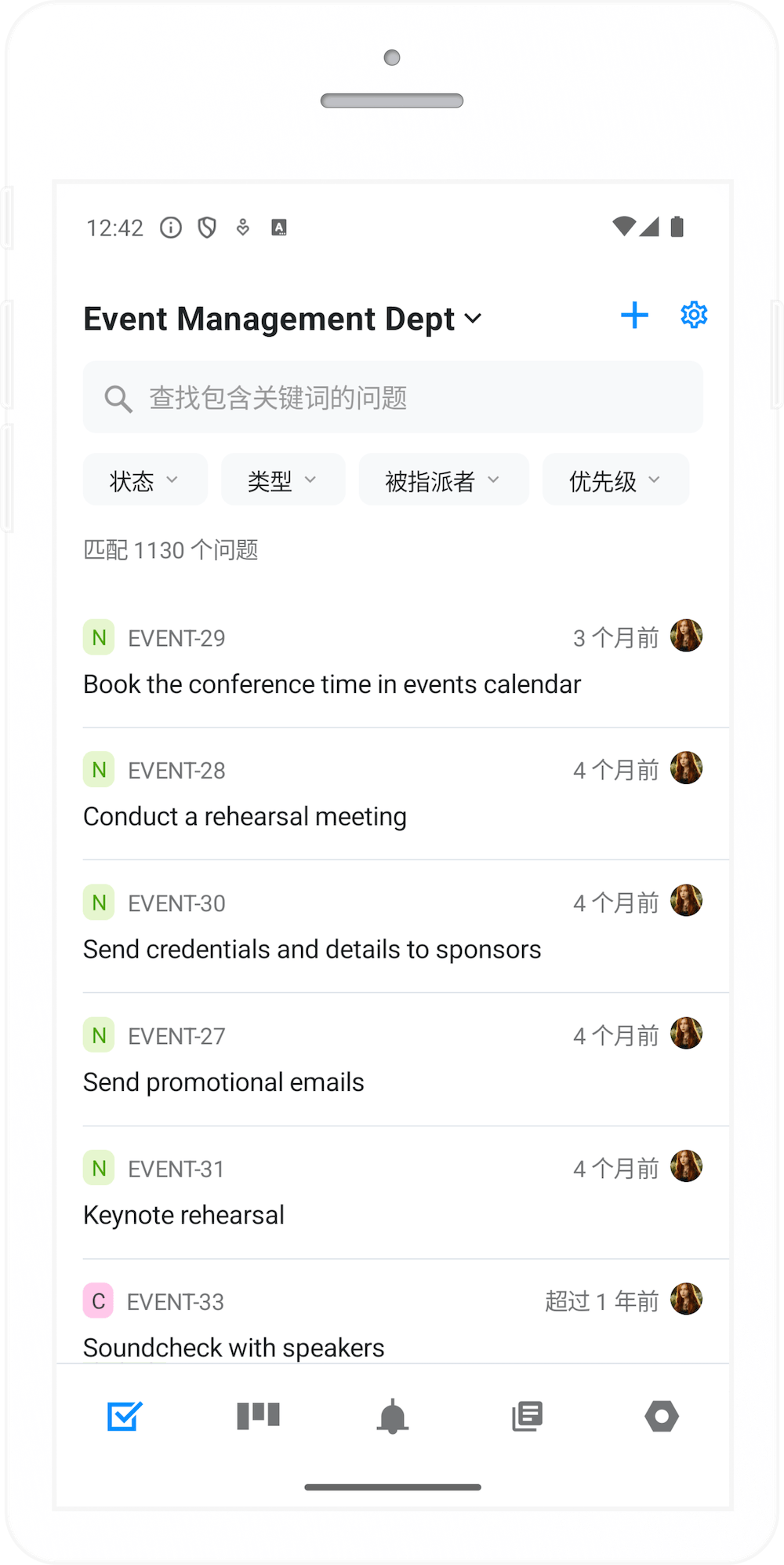 使用 iOS 和 Android 版的 YouTrack Mobile 管理任务和项目,随时随地展开协作。 移动应用支持所有主要的 YouTrack 功能并提供可配置的推送通知。