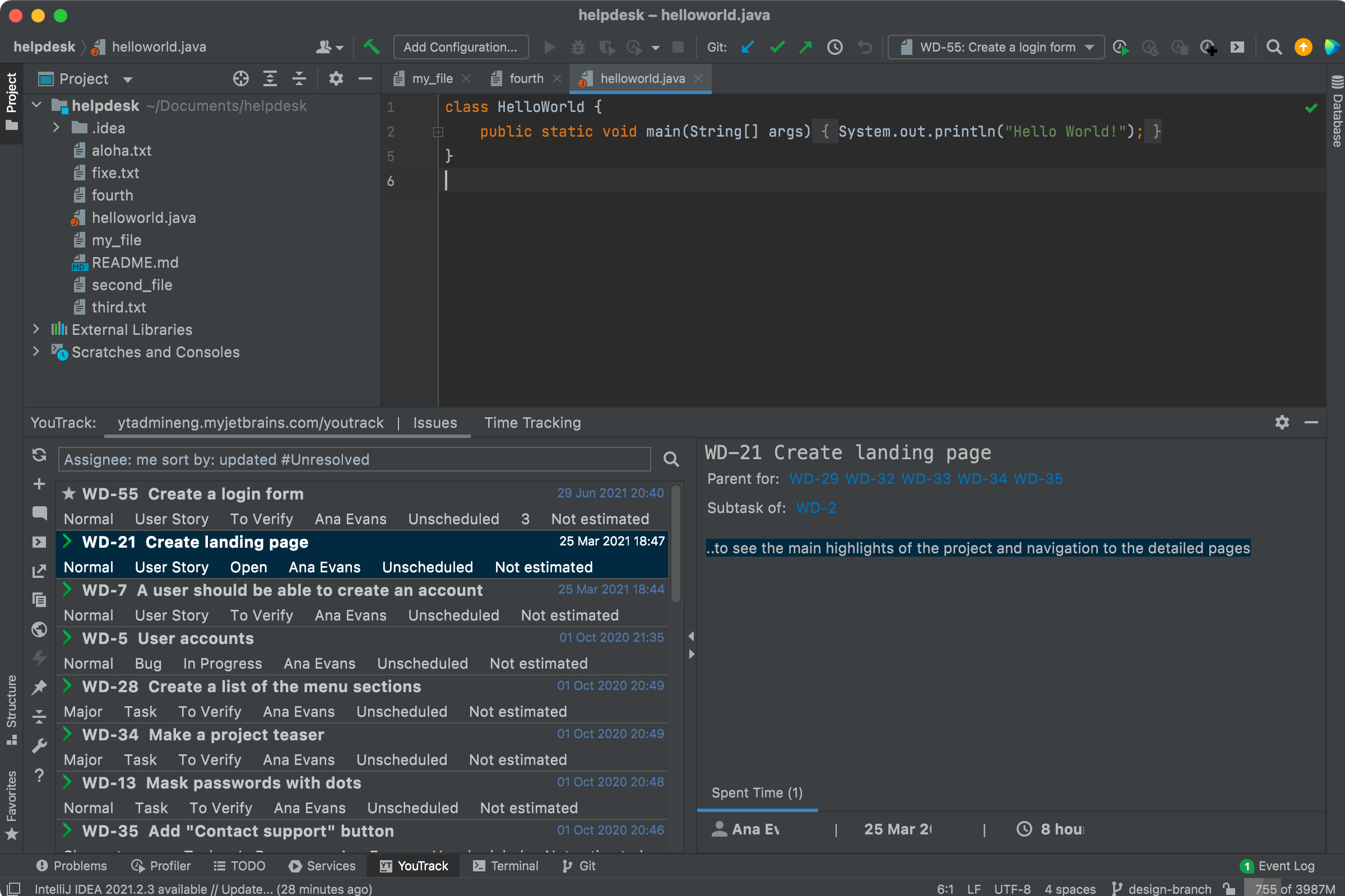 YouTrack 的自动和手动时间跟踪功能使记录更加轻便精准。 带有详细分析的清晰报告可让您快速识别和消除瓶颈,确保每一分钟都得到考虑。