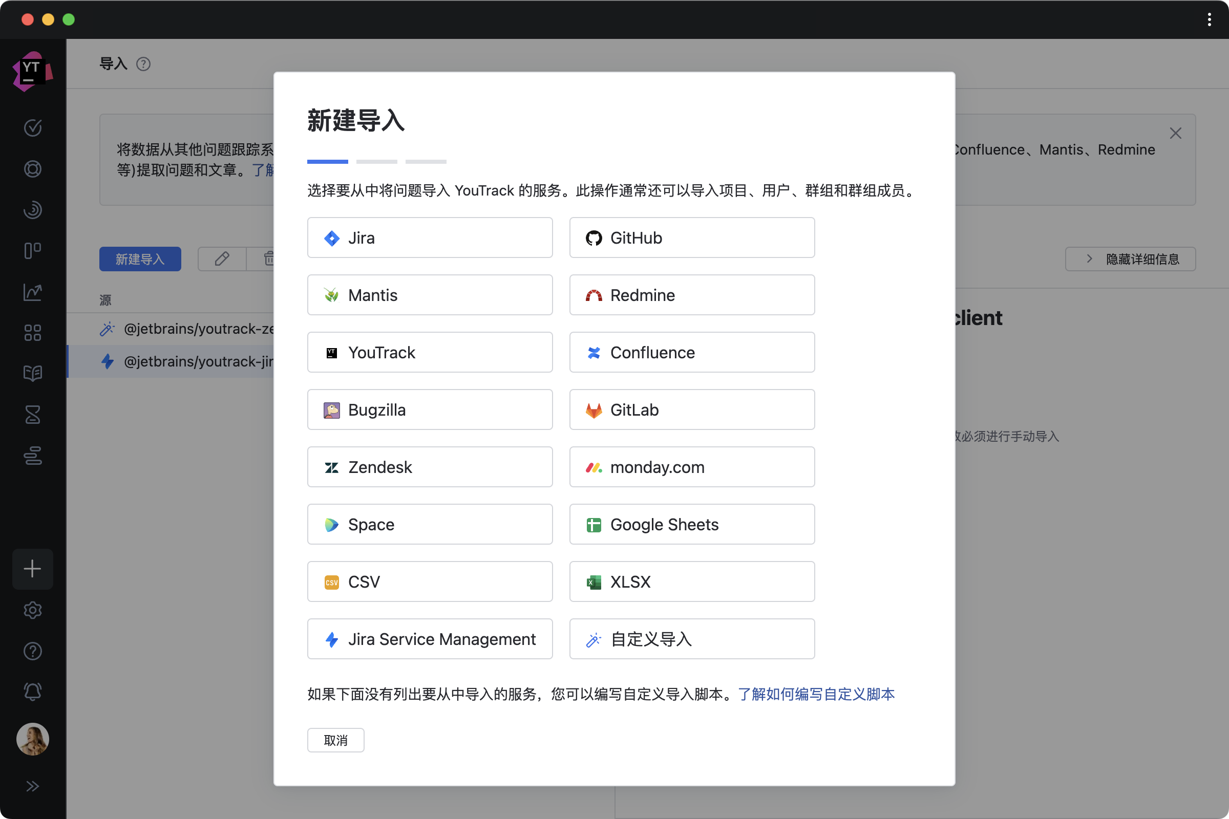 将用户、项目、任务和其他实体从最流行的项目管理和任务跟踪系统迁移到 YouTrack。 持续导入可将来自不同供应商的多个系统整合到一个易于管理的 YouTrack 实例,实现无缝跟踪和报告。