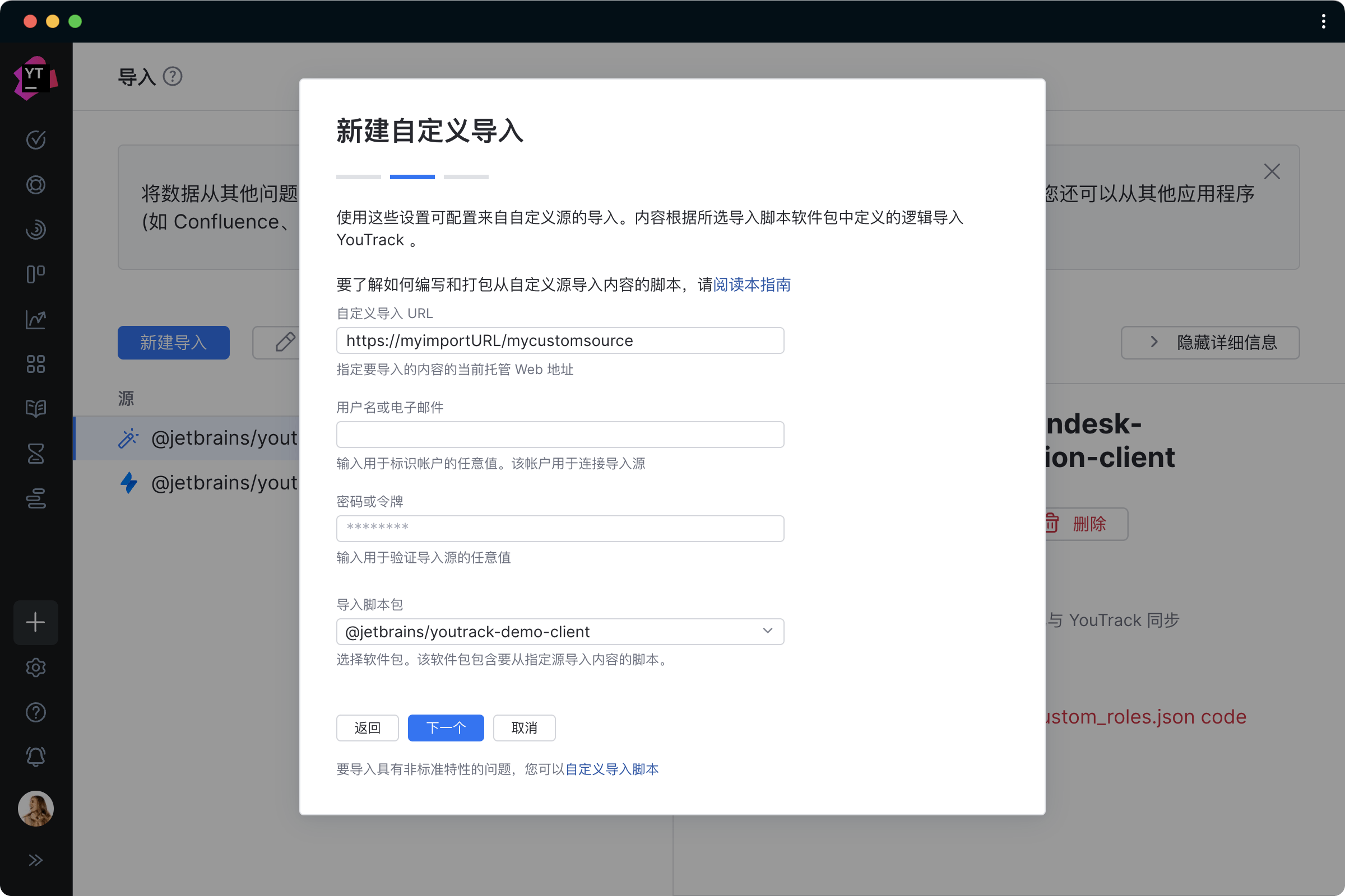 YouTrack 允许您使用自定义 JavaScript 导入脚本从任何外部源导入,这些脚本将导入的数据映射到 YouTrack 实体。 导入 API 具有完整文档,并提供演示导入脚本以供参考。