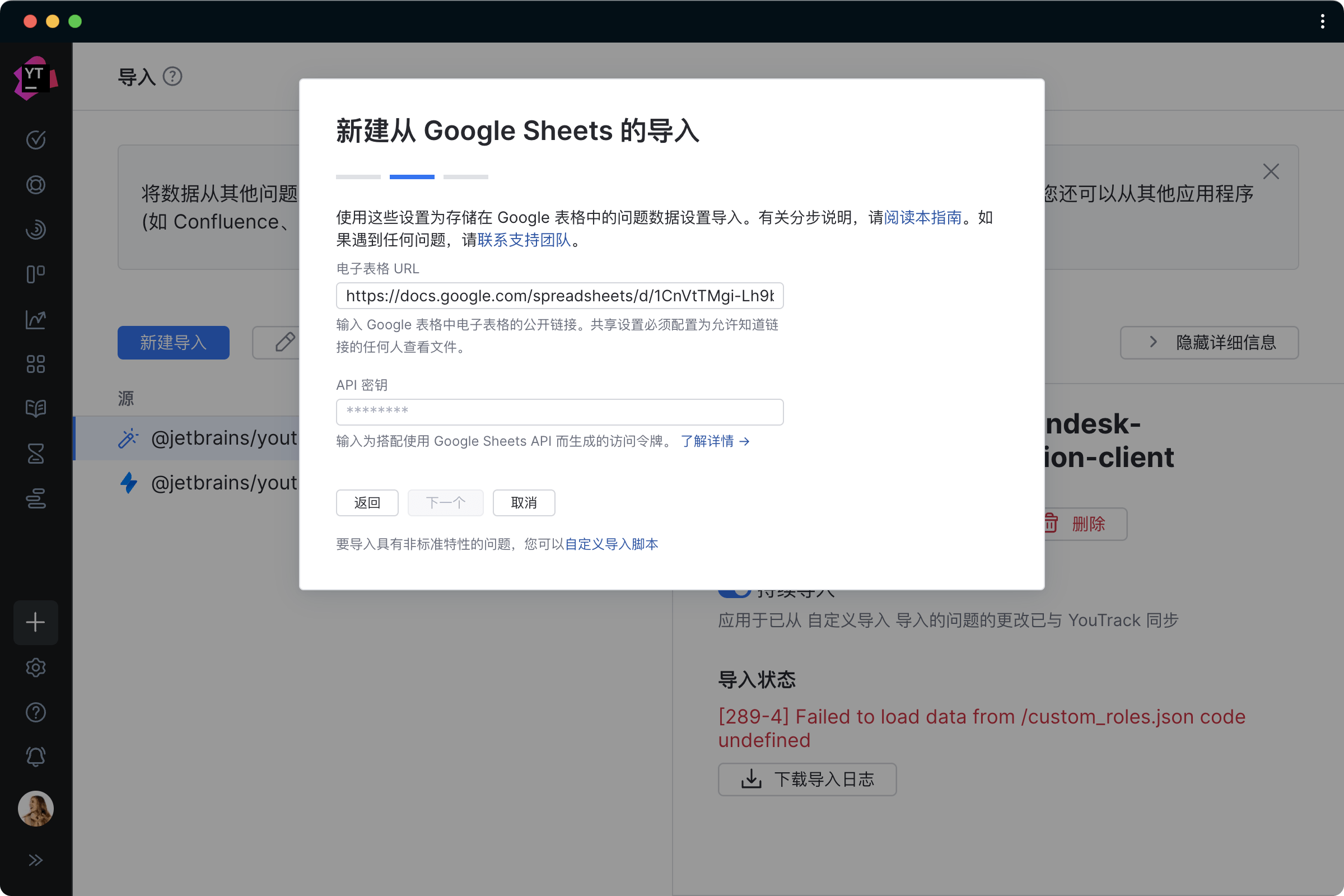 YouTrack 也支持从 Google 表格导入问题数据。 这意味着您可以从任何以兼容格式(包括 CSV 和 XLSX)导出数据的跟踪器有效导入问题。 您还可以将从 Google 表格导入的功能用作批量导入问题的工具。