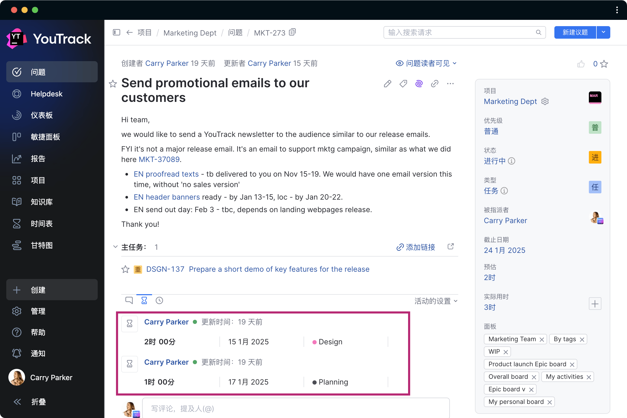从软件开发和 DevOps 到人力资源和营销,YouTrack 中的核心任务管理功能提供了各种团队需要的所有功能,可用于轻松跟踪和协作处理任何规模的项目。