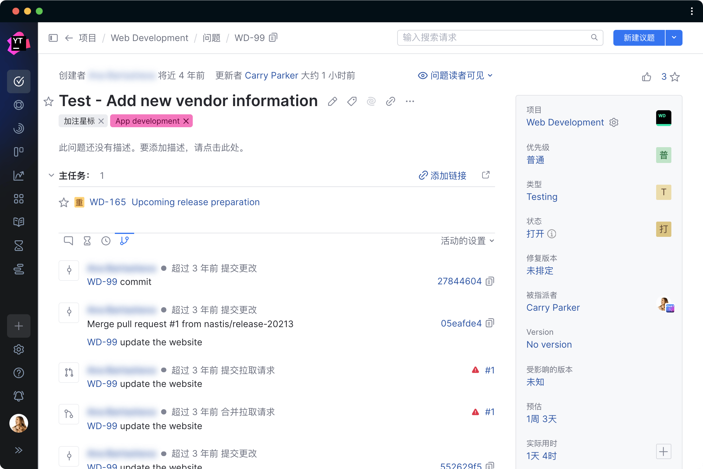 YouTrack 包括许多专为软件开发和其他技术团队设计的功能,例如时间跟踪、VCS 集成以及批量编辑和对键盘快捷键与命令的广泛支持等高级用户功能。