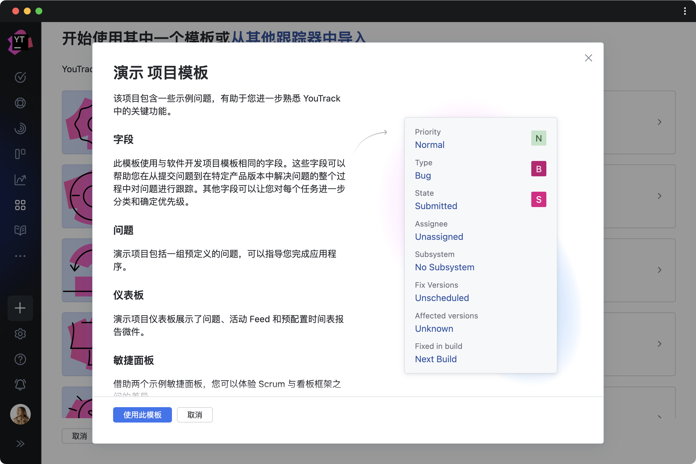 入门包可以帮助新用户更快熟悉 YouTrack 的功能,还可以让有经验的用户探索他们不了解的功能。