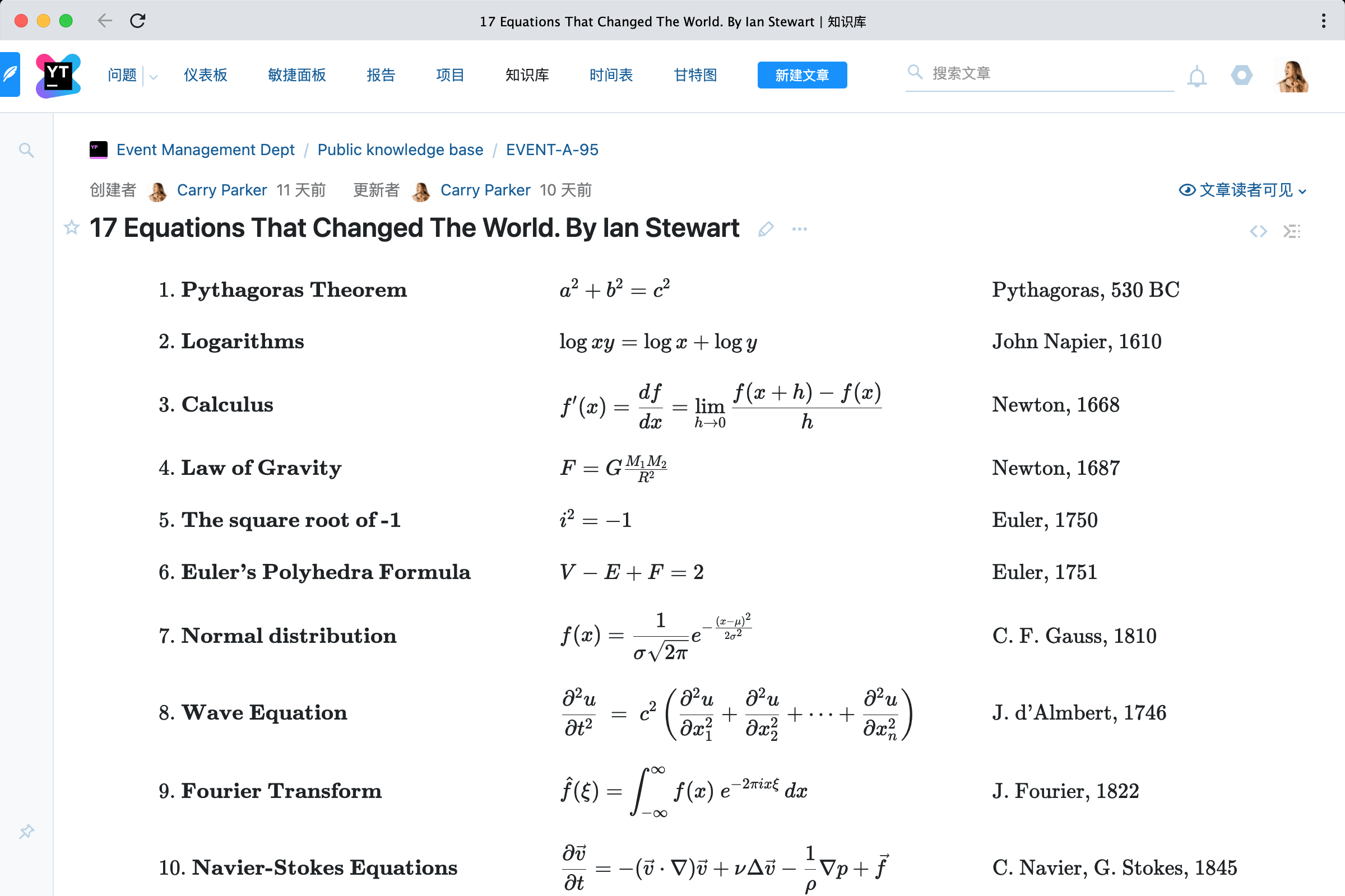 YouTrack 文本编辑器现在支持方程式和公式的 LaTeX 表示法。