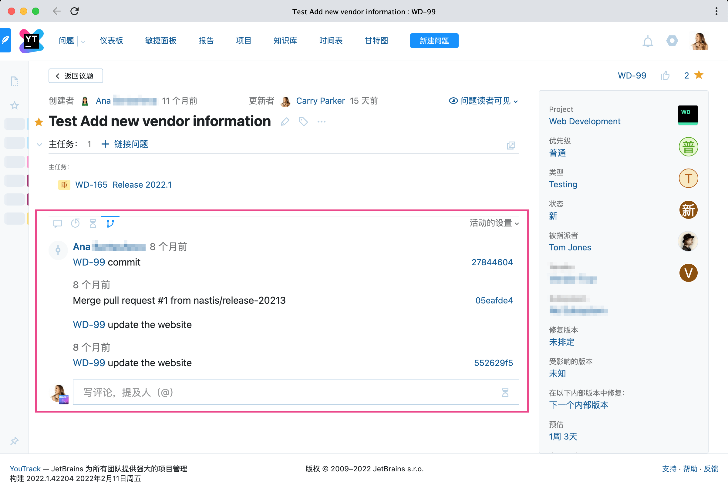 现在,喜欢使用 YouTrack Lite 进行工作的软件开发者无需切换到 Classic 即可查看 VCS 更改。