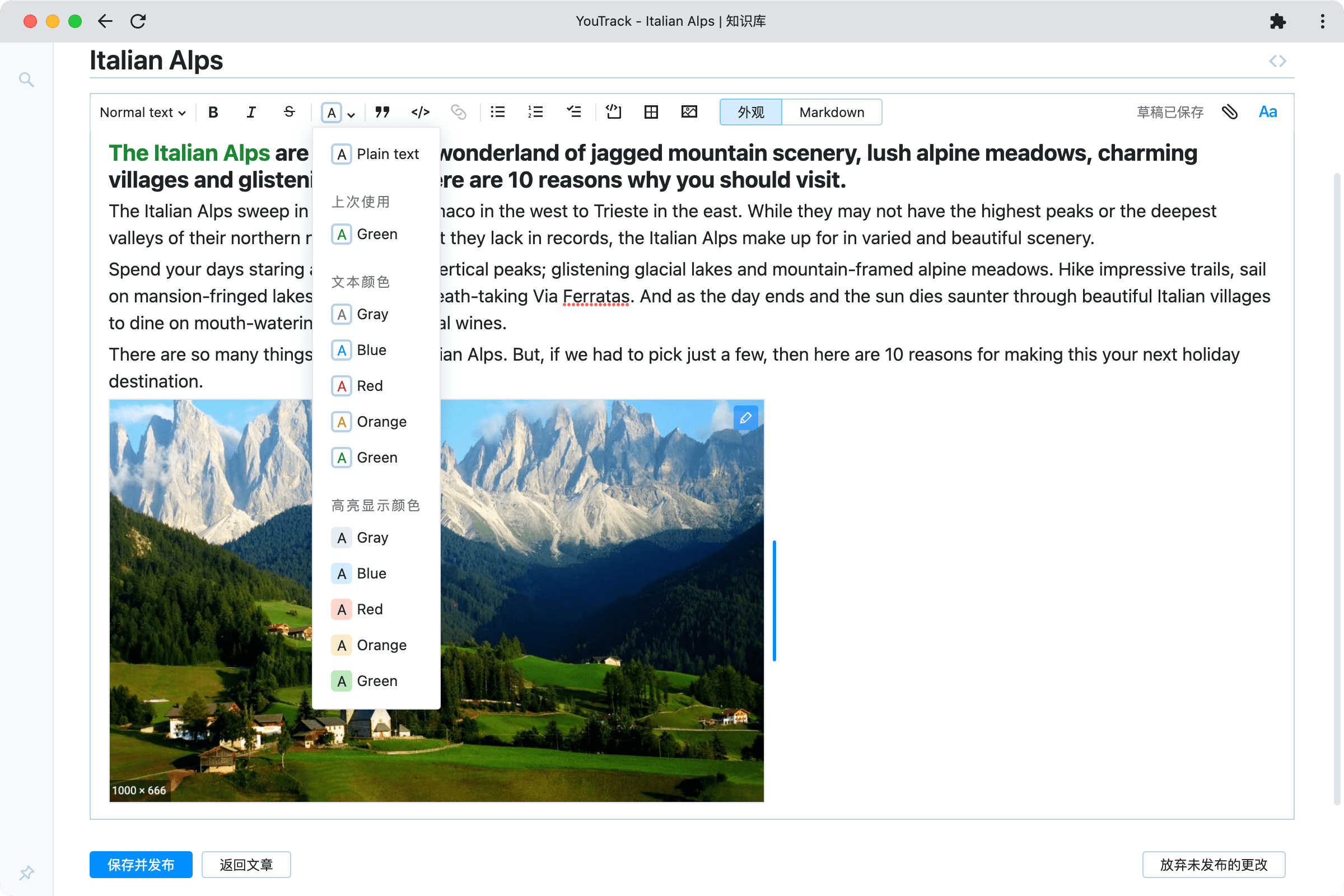 任务、注释和文章中的图像格式设置得到简化。 借助图像编辑器,您可以裁剪、高亮显示、绘制和模糊图像。 此外,处理文本时,您还可以使用着色选项使内容更加生动。